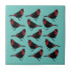 Azulejo De Cerâmica Pássaro Tanager Negro Vermelho-Colarado