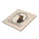 Este azulejo de cerâmica preto e bronzeado Dachshund apresenta um adorável filhote em um quadro floral, e um fundo bege claro com pegadas e ossos de cachorro. Torne qualquer espaço vivo mais bonito com este design de cão amável e divertido.