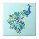 ilustração Retro-denominada de um pavão nos azuis e nos verdes.