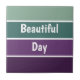 Um padrão horizontal verde e roxo listrado e o texto: Belo Dia. Você pode clicar em personalizar e editar o texto. Escreva duas palavras em uma linha.