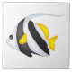 Ilustração de peixe anjo, preto e amarelo, em forma de esboços, com vestuário e acessórios para crianças