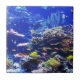 Uma multidão de peixes brilhantemente coloridos arremessa dentro e fora dos recifes.
