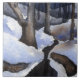 Esta imagem é da minha pintura de aquarela original de um pequeno riacho ao longo da borda do campo atrás da minha casa. As águas noturnas pareciam tão escuras à noite que o contraste com a neve exigia uma pintura.