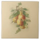 Uma ilustração de um grupo de peras vermelhas e amarelas em um ramo com folhas verdes, de uma pintura do vintage pelo artista Catharina ou Catherine Klein, nascer 1861.