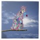 Um pássaro branco e colorido, empoleirado em um galho olhando para fora e sobre. Personalize este design nos seus produtos favoritos.