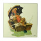 Artista: Ancião & cão de sono de Norman Rockwell | em linhas de pesca do barco a remos w/multiple