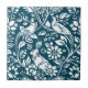 Azulejo cerâmico num padrão contínuo de ladrilhos - William Morris, design de papel de parede Art Nouveau de faisões e lebres entre folhas, vinha e flores - branco sutilmente texturizado sobre fundo azul-denim/indigo