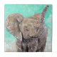 Pequena pintura acrílica de um pequeno elefante de outra poster da minha filha.