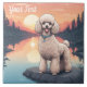 Poodle perto de um lago ao pôr do sol. Adicione esta imagem a outros produtos. Adicione seu próprio texto também. Altere a cor do fundo. Muitos animais de estimação na minha loja.