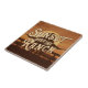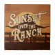 Mergulhe na beleza nostálgica de um pôr do sol clássico sobre um rancho e um touro com este design de azulejo cerâmico vintage degradê retrô. Inclui o texto “Pôr do Sol Sobre o Rancho”.