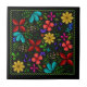 Azulejo De Cerâmica Preto Elegante | Folk Floral Latino-Americano