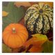 Azulejo cerâmico quadrado com imagem de uma abóbora laranja, uma abóbora verde e amarela e folhas vermelhas, douradas e verdes. Faz um presente de anfitriã excelente. Consulte pote de doces, caneca, placa de papel e portas copos correspondentes. Veja toda a coleção de Azulejos de Ação de Graças na categoria HOME na seção HOLIDAYS.