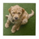 Um filhote fofo adorável sentado num gramado, fotografia tirada de cima.
