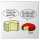 Cartoon Humorous Kitchen Cerâmica do Queijo Amante apresenta uma ilustração engraçada de desenho animado mostrando uma grande cunha de Jack Cheese batendo em um doce Gouda com uma de suas melhores linhas.