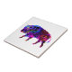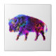um trabalho de arte decorativo de um búfalo ou bisão muito coloridos, com todas as cores do arco-íris na sua silhueta num azulejo de cerâmica.