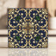 Azulejo De Cerâmica Rainha Esther Damask Scroll Marinho Azul Dourado