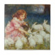Azulejo De Cerâmica Rapariga alimentando coelhos