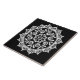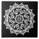 Esta mandala branca senta-se sobre um fundo preto. Parte da coleção Brosya Mandala.