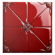 Belo azulejo cerâmico brilhante vermelho com centro floral e cantos.