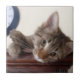 Este adorável azulejo cerâmico apresenta um gatinho de mesa irresistível, com um grande olho atraente sobre uma prateleira. Este seria um presente incomum para um amante de gatos, e uma porta copos bonita para uma mesa ocasional.