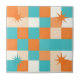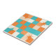 Azulejo De Cerâmica Retro Teal Orange Starburst Checkerboard