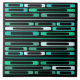 Um design de arte do estilo vintage dos anos 50 tem formas geométricas simples de retângulos largos. Várias tonalidades de teal, turquesa e aquamarina contra fundo preto.