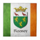 Casaco de armas da família Rooney sobre a angustiada bandeira irlandesa