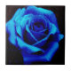 A rosa digitalmente alterada é agora um rico Azul Sapphire de cor com algumas gotas de orvalho e chuva vermelha a cair.