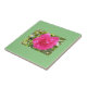 Um Azulejo cerâmico com uma pintura de rosa rosa, com um chão verde nas costas.