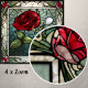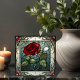 A Rosa vermelha com o Azulejo cerâmico de Vinha de Vidro Estreito apresenta uma rosa vermelha elegante solteiro sobre um fundo de azul-cinza com borda de rosa. Este azulejo tem um olhar antigo colorido feito no estilo Art Neveau. Este design também está disponível em uma imagem espelhada. Há muitas aplicações maravilhosas para estes belos azulejos. Disponível em 2 tamanhos de 4,25" x 4,25 " e 6" x 6".