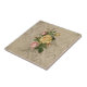Design de textura rústica, apresentando um spray de rosas de safra em amarelo e cor-de-rosa, com delicado ornamento floral gravado sobre um fundo úmido amassado de roupa de vintage.