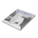 Este azulejo cerâmico encantador apresenta meu design de um rouco branco com olhos azuis, contra um fundo de inverno. Um belo presente ideal para um amante de Rouco e uma adição colorida para uma mesa de café.