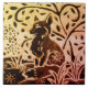 Com um design de batik castanho e pistas de ouro e ferrugem, esses azulejos têm uma sensação de floresta artística. Minha assinatura trabalho de arte de azulejo de vida selvagem está cheia de animais estilizados, flores e folhagem com uma inspiração de chinoiserie. Eles estão disponíveis em várias combinações de cores e dois tamanhos e podem ser encontrados em minhas coleções na minha loja Zazzle, www.zazzle.com/store/BonneIdeeArt. Use-os como decoração ou trivialidades. Zazzle também tem quadros e caixas de manutenção para esses azulejos.