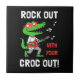 Gráfico de crocodilo "Rock Out With Your Croc Out" desenhado por bCreative mostra um croc vestido tocando uma guitarra vermelha! Isso faz um presente excelente para a família, amigos ou um presente para você mesmo! Este gráfico engraçado é um excelente adicional ao estilo de qualquer um. Criativo é um criador líder e licenciador de designs e propriedades originais e tradicionais. ©LCT Creative. Licença de bCreative.com