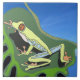 Este azulejo cerâmico colorido apresenta meu simples design de um sapo de árvore verde em uma folha de selva contra o céu azul brilhante. Perfeito para iluminar um topo de trabalho ou uma mesa ocasional e um presente adorável para um amante sapo.