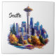 Este azulejo cerâmico encantador é mostrado com um impressão de arte em aquarela de Seattle. Personalize este item ou comprar conforme mostrado. Imagem licenciada