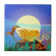 Azulejo De Cerâmica Sereia com Peixe e Lua