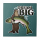 Espalhe a esperança e a inspiração com esta ilustração apresentando uma lontra de rio em pé segurando uma truta arco-íris de tamanho excessivo que é maior do que ele, ao lado do texto "Dream Big". Um azulejo ideal para otimistas, sonhadores, formandos e até mesmo pescadores desejosos!