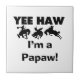 Yee Haw, eu sou uma camiseta Papuásia, canecas, cartões, adesivos, botões de anúncio, keepsakes de papá, e outros presentes de mamão com um cavalo de fivela e design de texto preto. Estes itens de roupa e presentes são perfeitos para avós pela primeira vez ou mamão temperado de uma nova chegada!