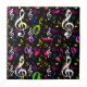 Símbolos e notas musicais coloridos com música, notas, clf, triplo, quaver,baixo,crochê sobre fundo negro