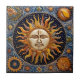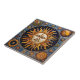 Transcenda para os céus com este azulejo cerâmico com tema celeste espantoso. O rico fundo azul marinho evoca a vasta extensão do céu noturno, fazer o brilhante sol ouro no centro verdadeiramente brilha. O sol sorridente irradia raios de chamas laranja e amarela que parecem dançar ao redor das bordas do azulejo. Traçar as bordas como estrelas na Via Látea são símbolos astrológicos incluindo uma lua crescente, um planeta aninhado, e uma estrela brilhante de cinco pontas. Escombros pequenos e joias douradas orbitam a cena, adicionando um toque de faísca cósmica. Esta peça de conversa traz uma vibração galáctica, galáctica, seja segurando uma parede ou exibindo suas entranhas favoritas. Deixe sua imaginação entrar em órbita com essa cerâmica de arte!