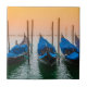 Um cenário pacífico ao lado do Palácio do Cachorro em Veneza, Itália, com quatro gondolas, todos juntos apontando para um belo pôr do sol.