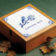 Bring timeless Delftware charm to your space with this “Something Blue” ceramic tile featuring a delicate cobalt-blue songbird perched on a leafy branch. The artwork has a hand-painted Dutch look with soft watercolor shading, classic corner scroll flourishes, and an antique crackle-glaze background for an authentic vintage pottery feel. A sweet nod to the wedding tradition, this tile makes a beautiful bridal shower gift, keepsake accent, or decorative touch for a cottage kitchen backsplash, bathroom nook, bar area, or gallery wall display.