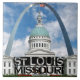 As lembranças que apresentam uma vista icónica do tribunal e da entrada velhos arqueiam em St Louis, Missouri.