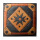 Azulejo cerâmico ao estilo sudoeste com a aparência de real ferramentas, couro costurado em tons de preto alaranjado e bronzeado com um motivo estelar. Os guardanapos, copos de papel e placas de papel também estão disponíveis neste design.