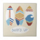 Surf! Eu até June Erica Vess. Possui três surfboards com designs diferentes e divertidos e frase "Surf para cima" na parte inferior da imagem.