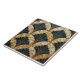 Um azulejo quadrado com um design semicírculo repetitivo, dividido em cada semicírculo em segmentos de cores alternadas: uma palha profunda e um ouro e nata malhados. Os segmentos de metal são sólidos e brilhantes, enquanto os de ouro e creme têm aparência texturizada, quase angustiada. Linhas escuras e finas irradiam do centro de cada semicírculo, separando os segmentos e adicionando uma sensação de profundidade. Os azulejos são organizados em uma grade, criando um padrão coeso e simétrico. O estilo geral lembra os designs da Arte Deco, com uma reviravolta moderna, levemente intacta.