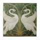 Um azulejo de cerâmica com o design de papel de parede do artista inglês Walter Crane (1845-1910), Swans, Rush & Iris (1875). Ele também fez muitas ilustrações para livros infantis.