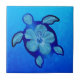 Azulejo De Cerâmica Tartaruga e hibiscus azuis de Honu