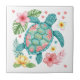 Azulejo De Cerâmica Tartaruga marinha e flores tropicais